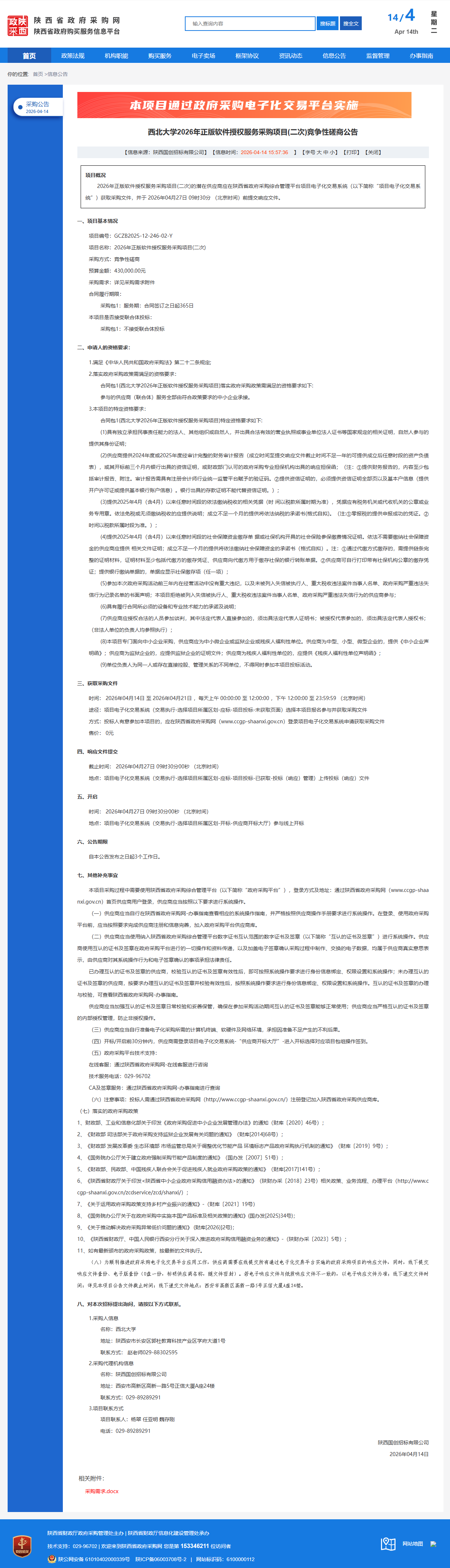 乐鱼web版登录入口2026年正版软件授权服务采购项目(二次)竞争性磋商公告