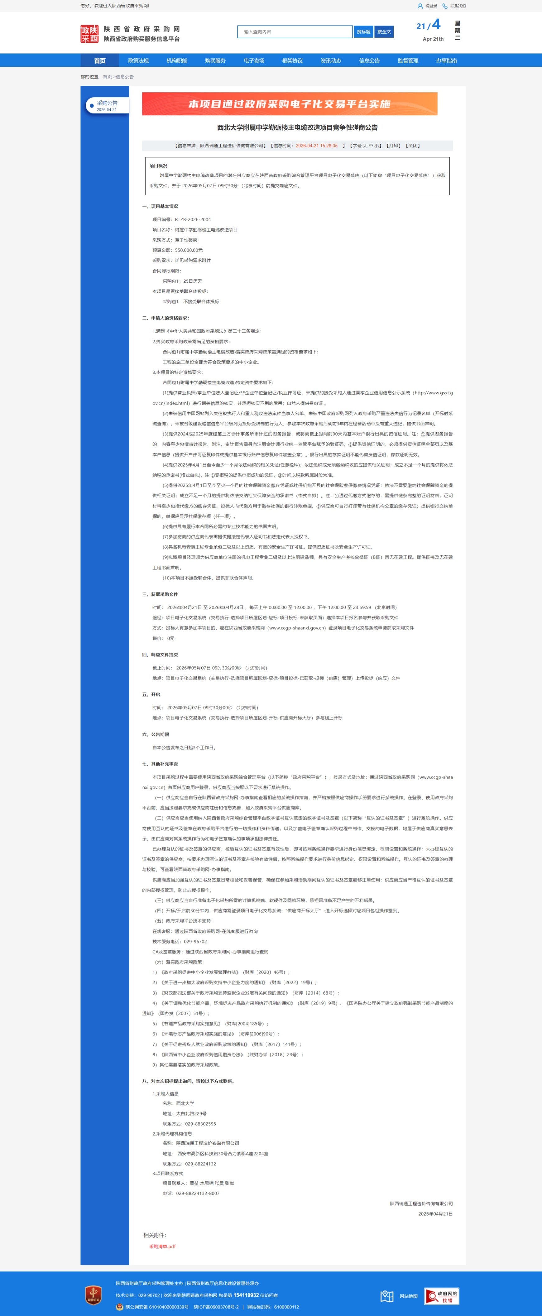 原公告链接:https://www.ccgp-shaanxi.gov.cn/freecms/site/shaanxi/ggxx/info/2026/8a69c06a9c8d6b84019daee17bbc7037.html?noticeType=001016¬iceId=25ab706f-3d56-11f1-8063-08c0eb20c666