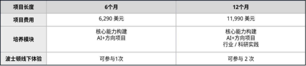 费用包含: MIT官方课程学习、线上PBL项目指导、行业实践与研究支持、寒暑期波士顿线下交流活动及完整教学支持体系。