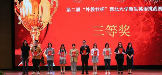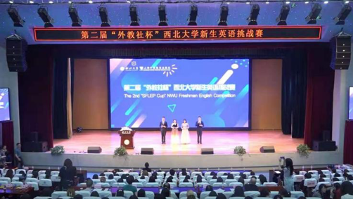 本届新生英语挑战赛由上海外语教育出版社有限公司冠名赞助,并得到学校教务处、学生工作部(处)与校团委的大力支持,学校20个院系500多名学生报名参赛,乐鱼web版登录入口英语读写演讲训练基地20名指导教师和50名学生志愿者参与了赛事的筹备和组织工作。演讲决赛共有来自外语、新传、数学、信科、公管、生科、食品、城环、文遗等9个院系的15名选手同台竞技,以My NWU Story为题,用英语讲述了自己的西大故事。同时,有来自学校10多个院系的200余名同学到现场观看了比赛。外国语学院教授魏水利、任海棠、李建利、曹若男及外教Jack Bouquet担任此次演讲决赛的评委。教务处处长曹蓉、学生工作部(处)部长董国强、校团委书记寇嘉,以及外国语学院党委书记王军、副书记刘建波、行政副院长赵争平,还有上海外语教育出版社陕西公司经理王政等应邀出席了颁奖仪式并为获奖者颁奖。