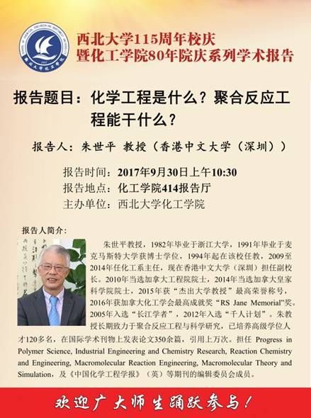 乐鱼web版登录入口115周年校庆暨化工学院80年院庆系列学术报告