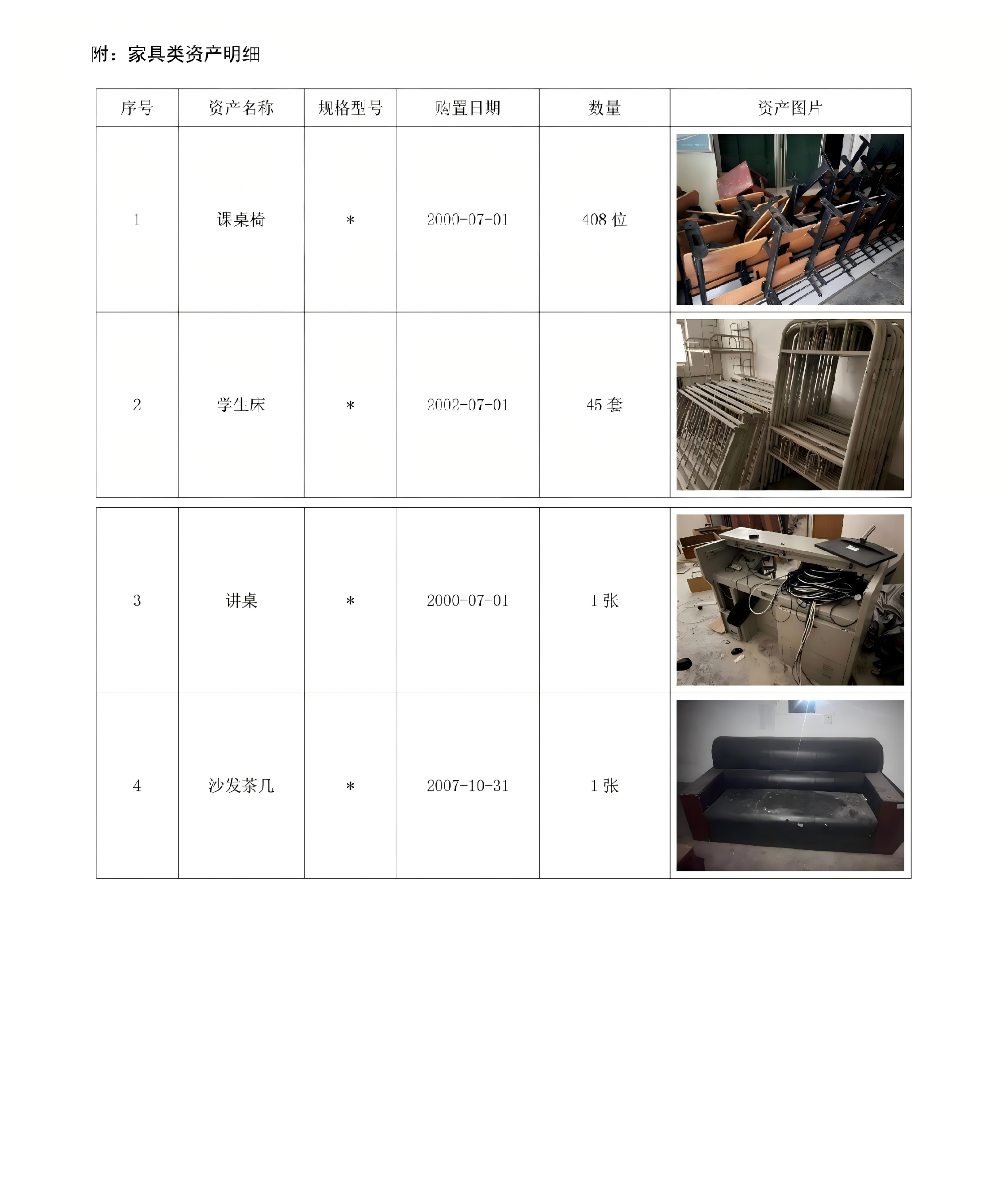 本批向校内公开调剂的家具类资产合计455件(台),原值126530元,现予以公示。