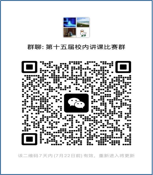 另请参赛选手及时扫码,加入“第十五届乐鱼web版登录入口讲课比赛”微信群,以便通知后续比赛相关事宜。