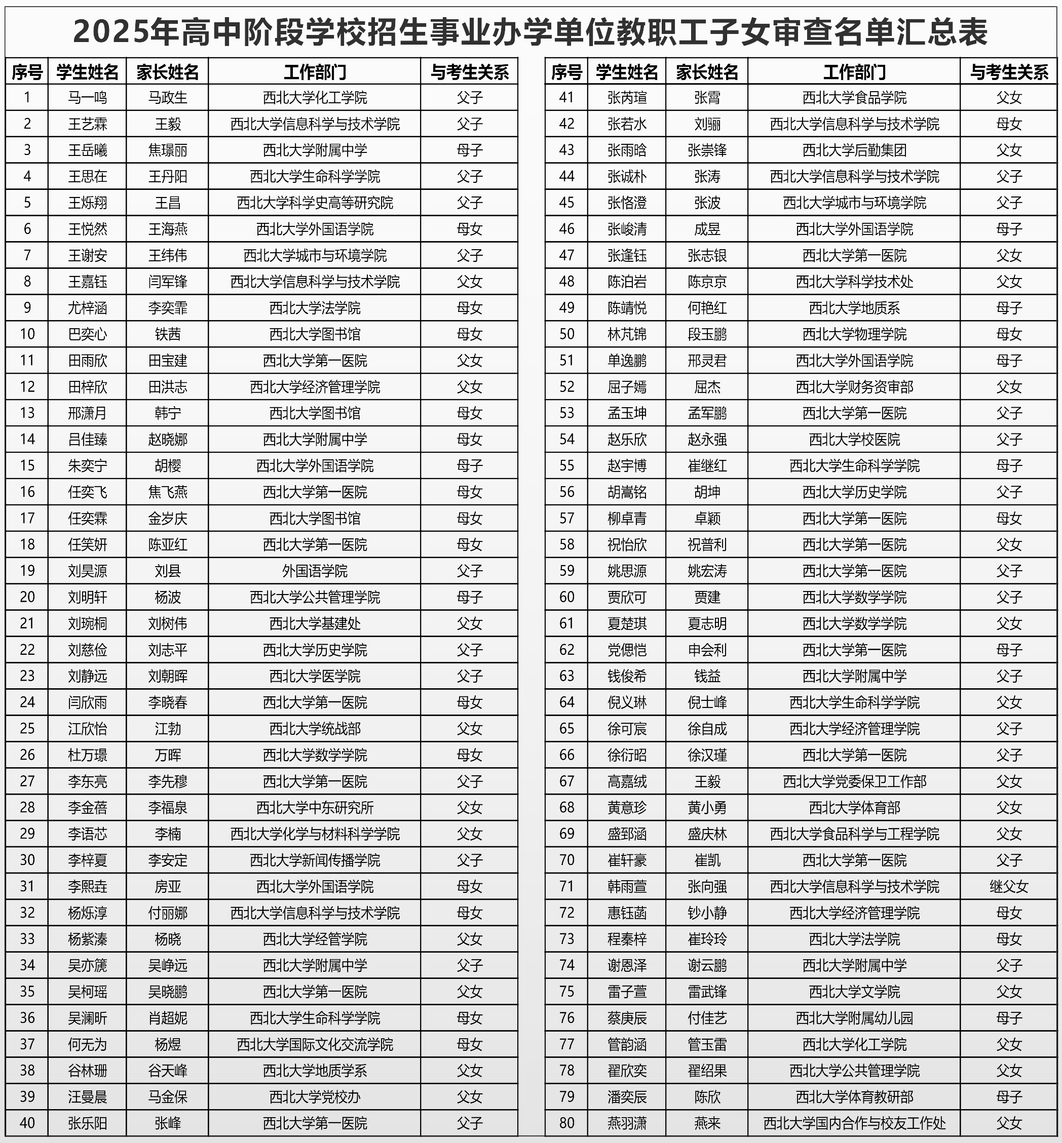 根据市、区教育局通知及要求,乐鱼web版登录入口于2025年5月13日开展2025年高中阶段学校招生乐鱼web版登录入口正式事业编制的教职工直系初中应届毕业子女审查工作。经大学人力资源部门、纪检部门审核,通过名单如下(按学生姓氏笔画数排序):