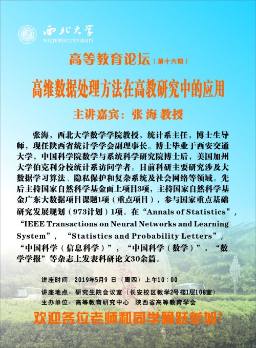 讲座题目:高维数据处理方法在高教研究中的应用