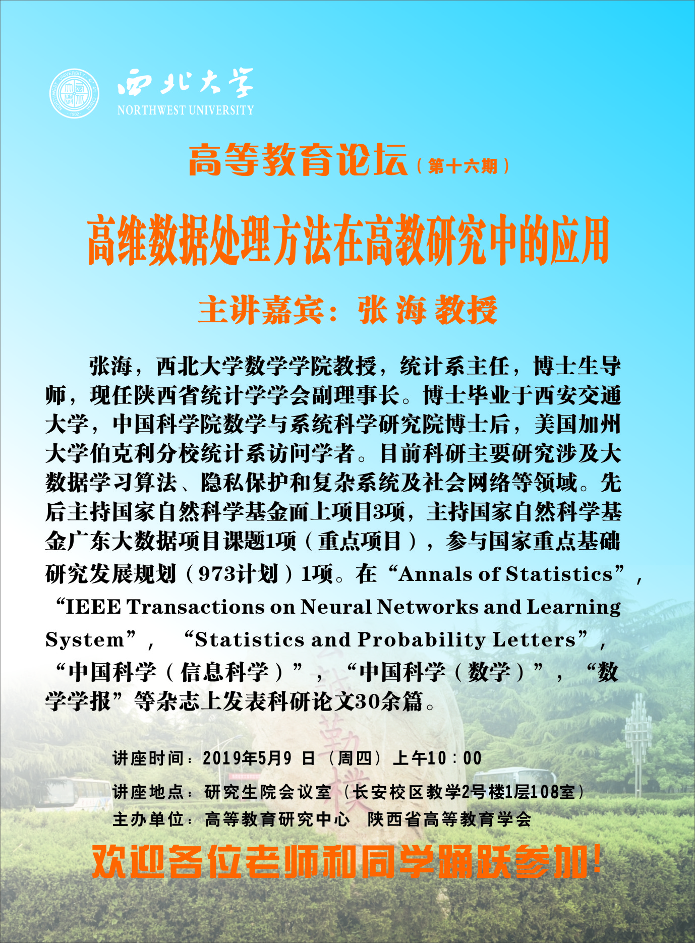 讲座时间:2019年5月9 日(周四)上午10:00