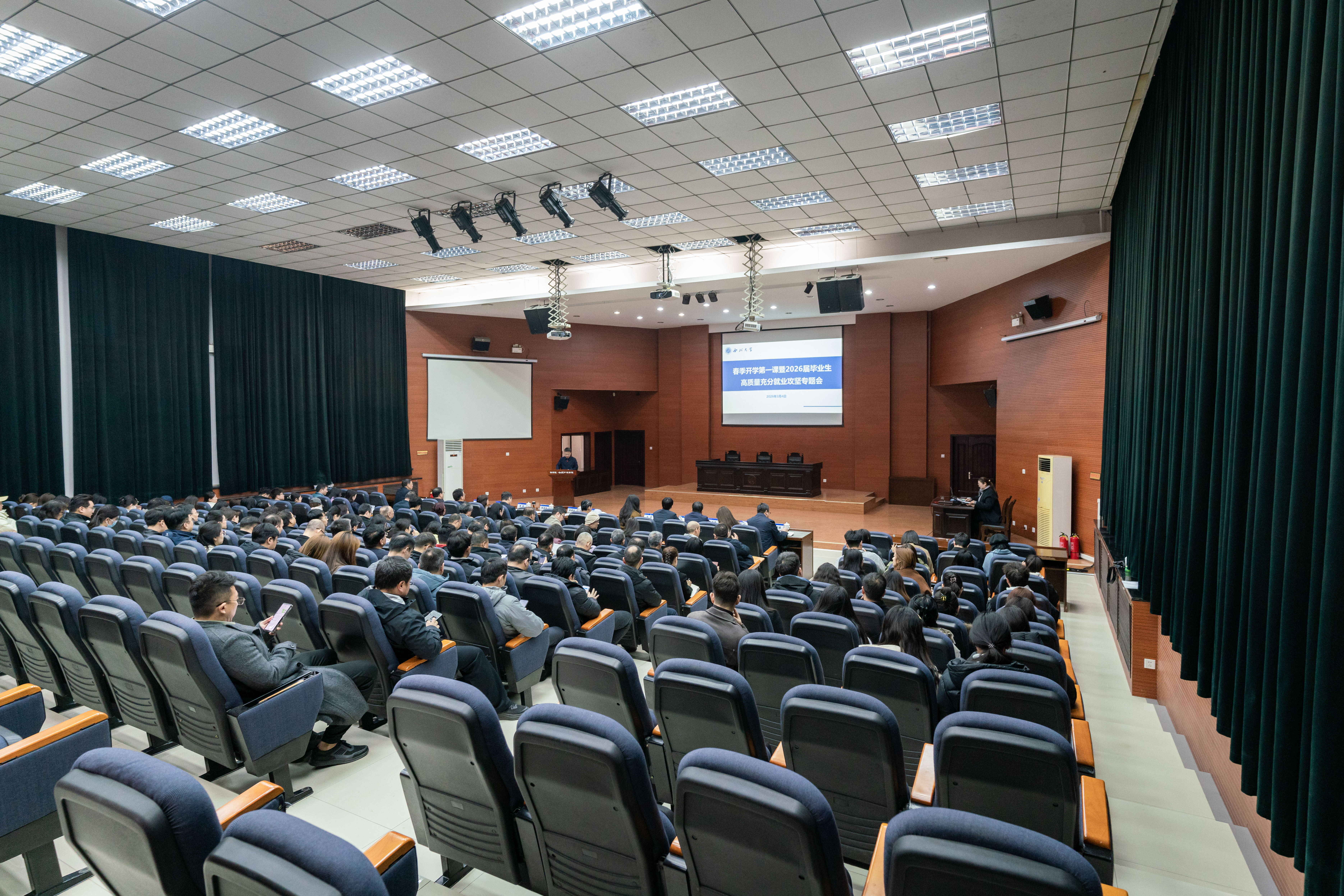 3月4日下午,学校召开春季开学第一课暨2026届毕业生高质量充分就业春季攻坚专题会。全体在校校领导,学校相关单位负责人和学生代表参加会议。会议由校长孙庆伟主持。