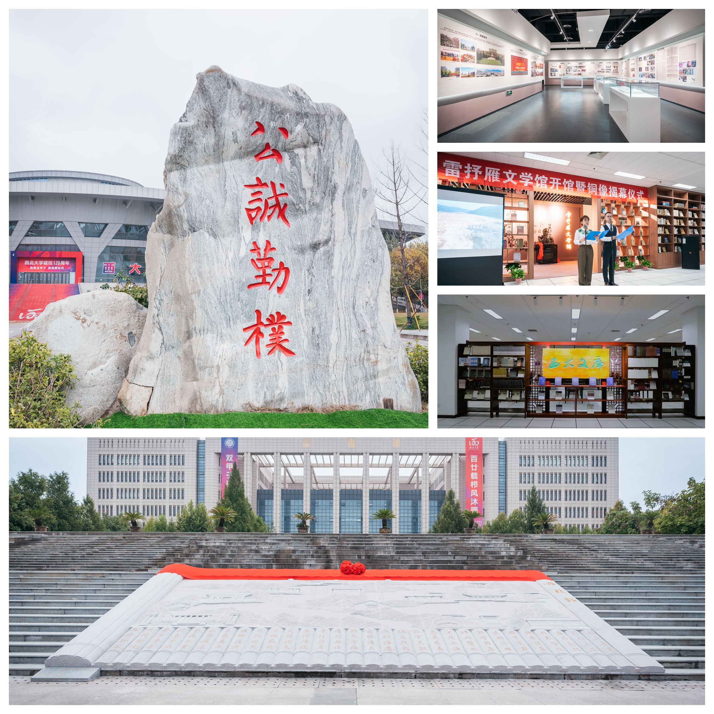 围绕校园“路、楼、园、廊、墙”,立项建设了一批校园环境文化提升项目,在两个校区重建了校史馆,建成雷抒雁文学馆、“西大文库”和校史地雕,为徐诵明、黄文弼、傅角今、熊庆来、齐越、高鸿、王戍堂、何炼成、罗健夫等校史上的模范人物塑像,复建了国立西北联合大学影壁、国立乐鱼web版登录入口门楼和《乐鱼web版登录入口侨寓城固记》纪念碑,让校园环境文化记得起历史沧桑、看得见岁月留痕、留得住文化根脉,共同营造“入芝兰之室久而自芳”的文化氛围。