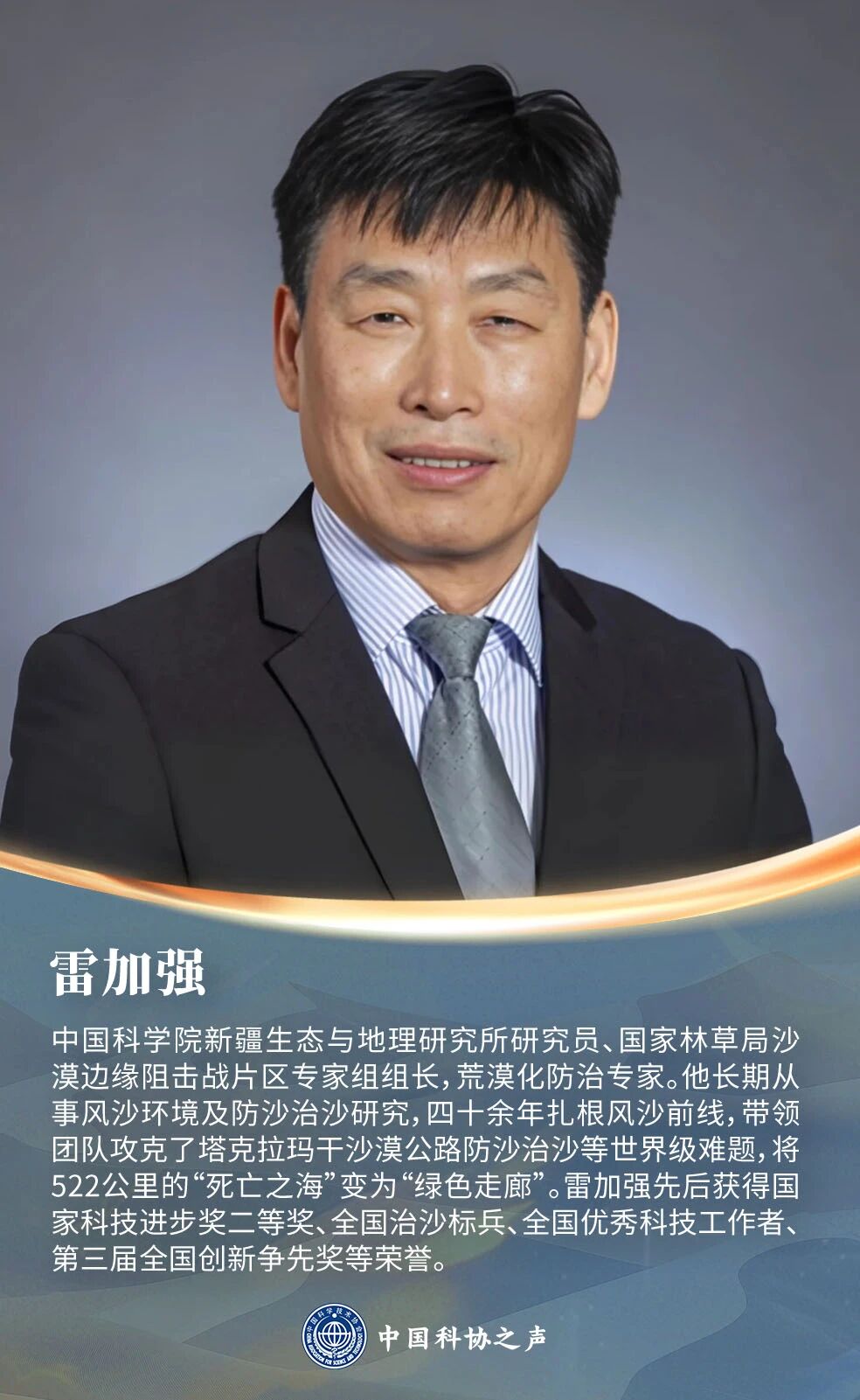 我还有一个梦想,就是推动“人工智能+防沙治沙”。我想未来能不能建立一个防沙治沙大模型,不仅可以智慧诊断问题,还能为决策提供智能化的方案选择。甚至,我们可以让公众在模型里模拟“治理塔克拉玛干沙漠的风沙危害”,看看需要多少水、花多少钱、会带来什么后果,这本身就是极好的科普。