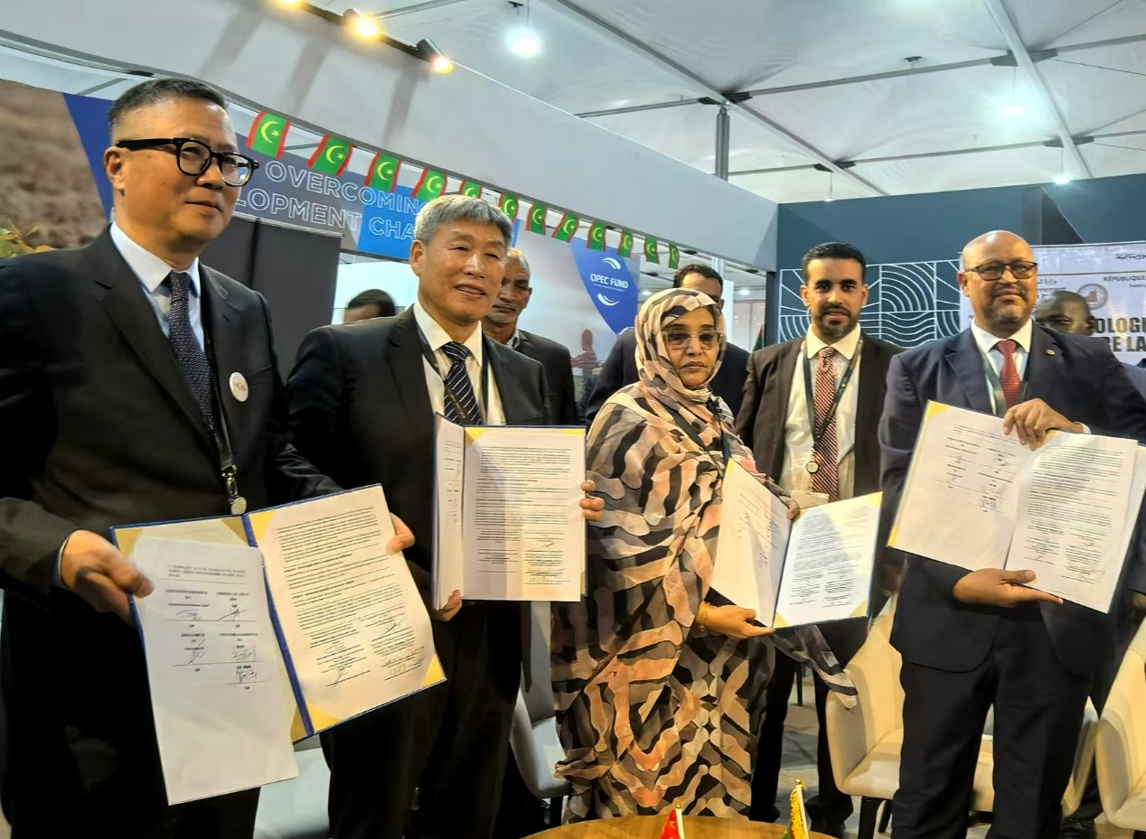 雷加强(左二)与毛里塔尼亚签订荒漠化防治新一轮合作协议。(受访者供图)